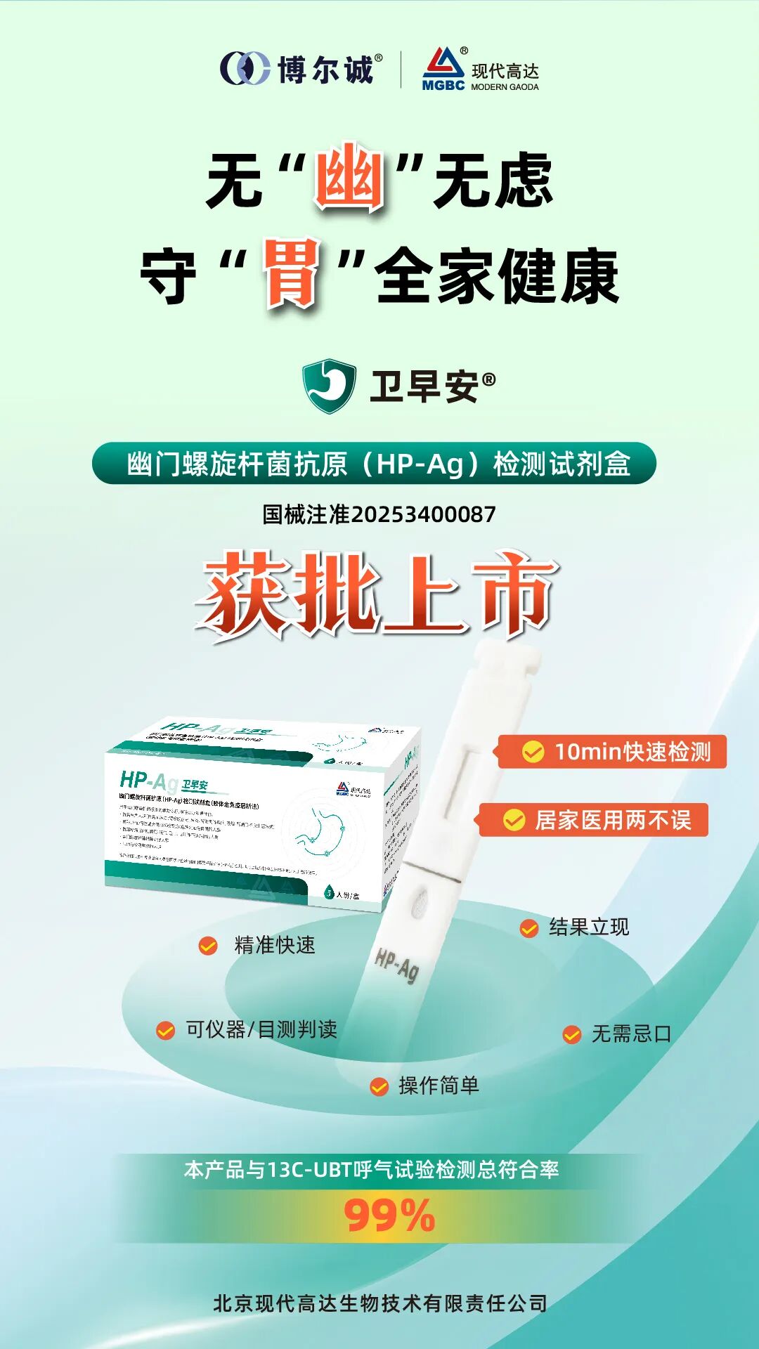 博尔诚「卫早安®」重磅上市!胃部健康,居家自测!精准、快速、便捷!