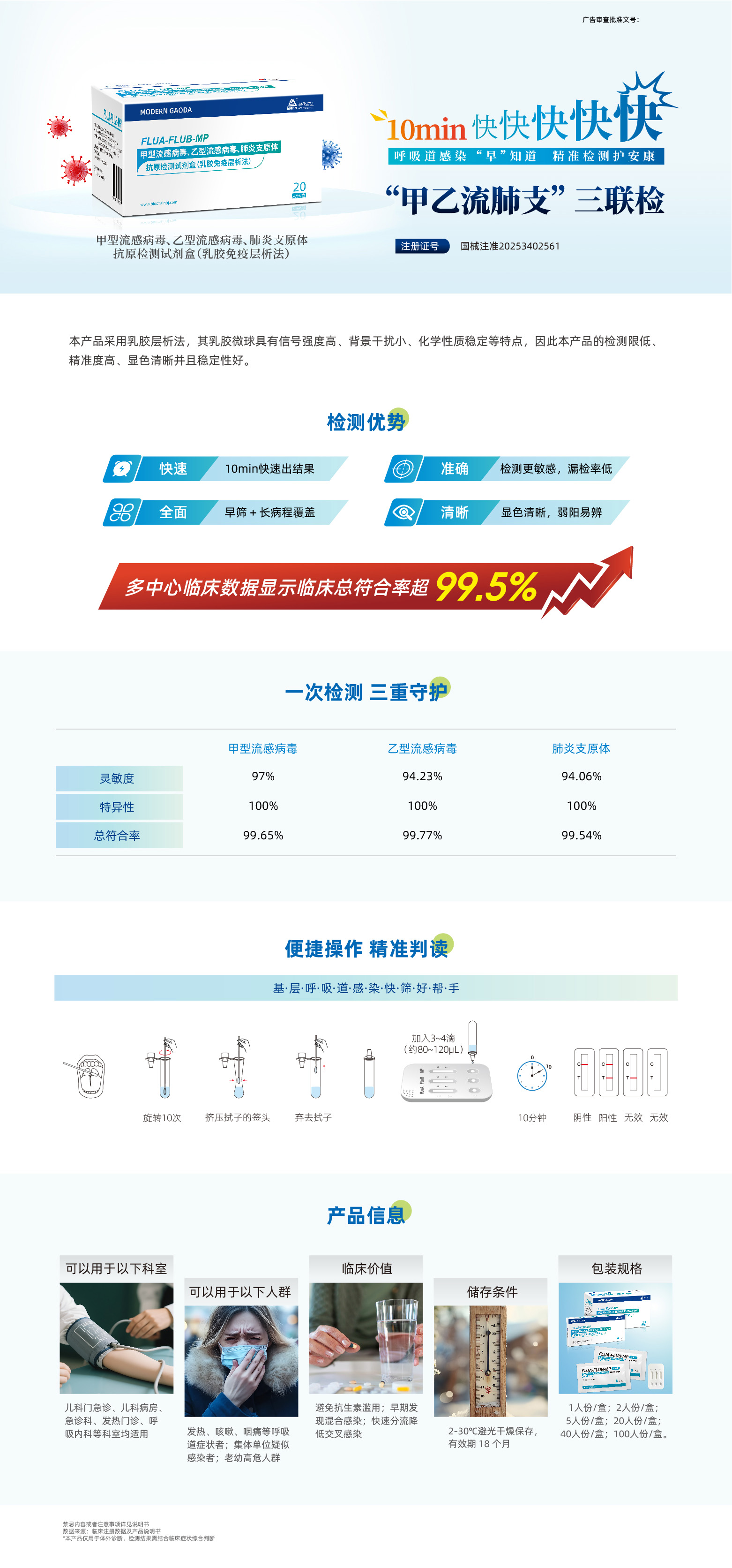 速早安TM甲型流感病毒、乙型流感病毒、肺炎支原体抗原检测试剂盒(乳胶免疫层析法)